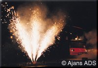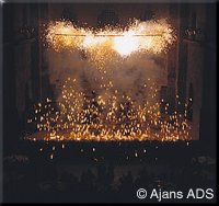 Piroteknik ve sahne efektlerini kullanarak, müzik, ışık ve laserle senkronize